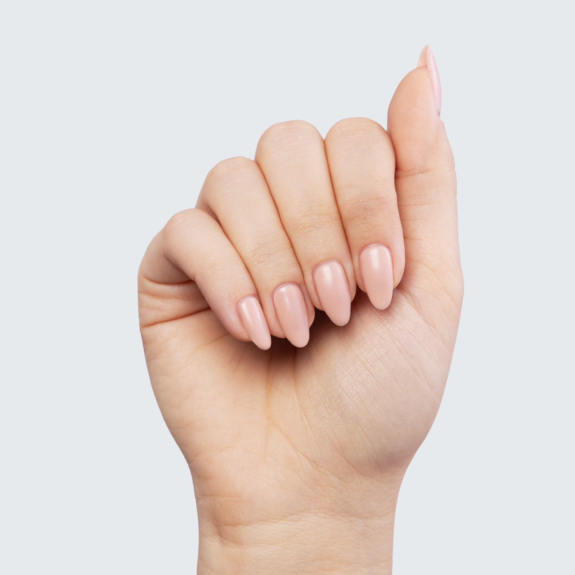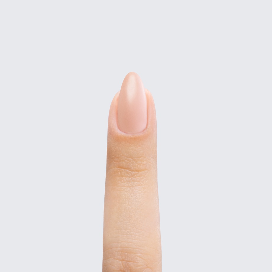 Pale pink. Opaque. Semi-matte finish. Warm undertone.
