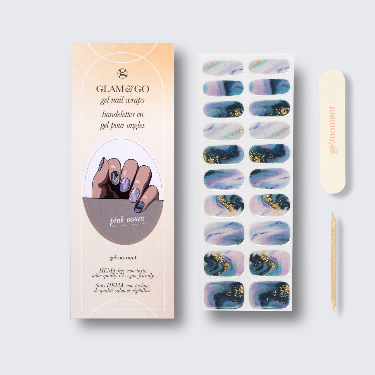 Take a moment to give yourself a head-turning, DIY gelmoment experience in a few easy steps with our GLAM & GO gel nail wraps.