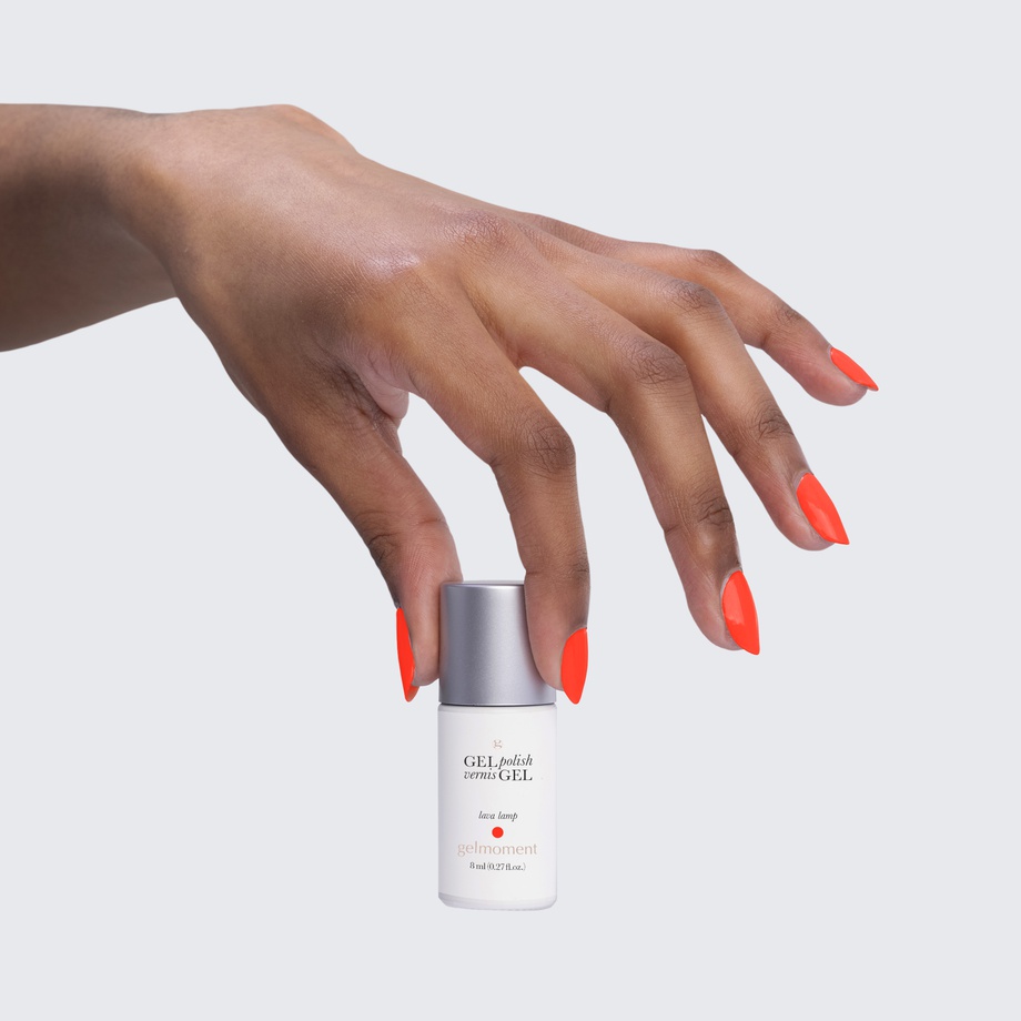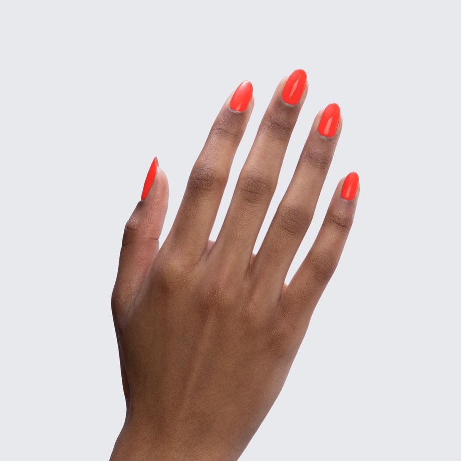 Let yourself get mesmerized by the bright hue of this neon orange polish.